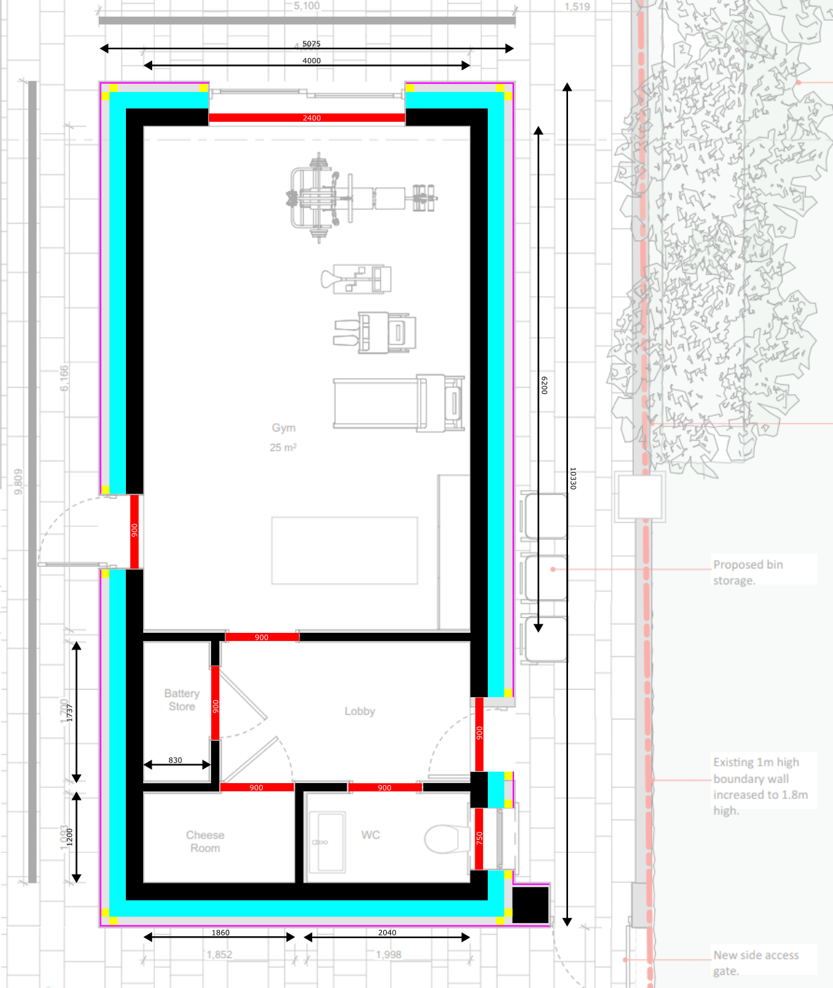 - The wall at the bottom of the main gym open area is moved slightly downwards to make the gym space exactly 6.2 metres long, only because I like round(er) numbers.