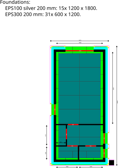 There isn’t much more to say here: I explained above why EPS300 is needed for the outer walls. I suppose I should mention why EPS100 is sufficient for the internal walls: EPS100 will compress by 10% at 100 kPa loading, and by 2% at 30 kPa loading. The inner walls are on edge rather than on flat, so that is a load of 24 kPa. The concrete slab is a further 3.42 kPa, so a total load of 28 kPa on EPS100 would be fine.
