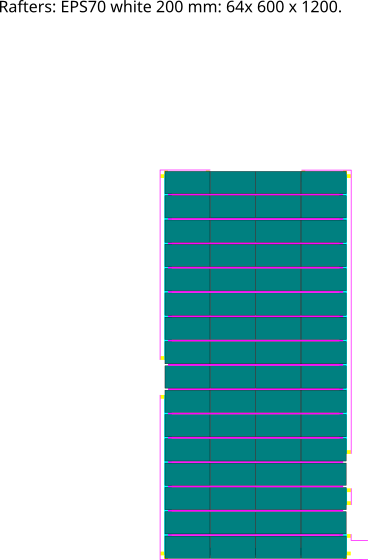 As shown in the outhouse buildup above, the 4800 x 225 x 44 flat roof joists are spaced at 622 centres to avoid having to cut the 200 mm EPS sheets in between them. Yes this is a little too wide for walking upon, there will be a fair bit of flex, but I don’t expect to walk on the outhouse roof much.