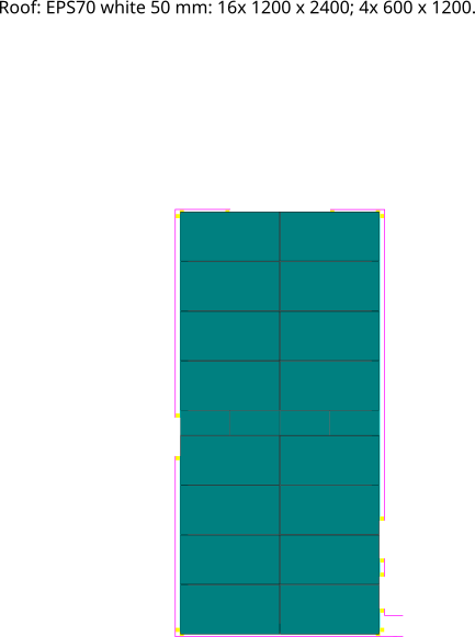 We make use of the big 1200 x 2400 sheets here to save on glue and effort. Above the two sheets we chop sheets into thirds to fill the gap at the top. You can see the glazing openings as red regions, again there the EPS sheets would need to be trimmed down.