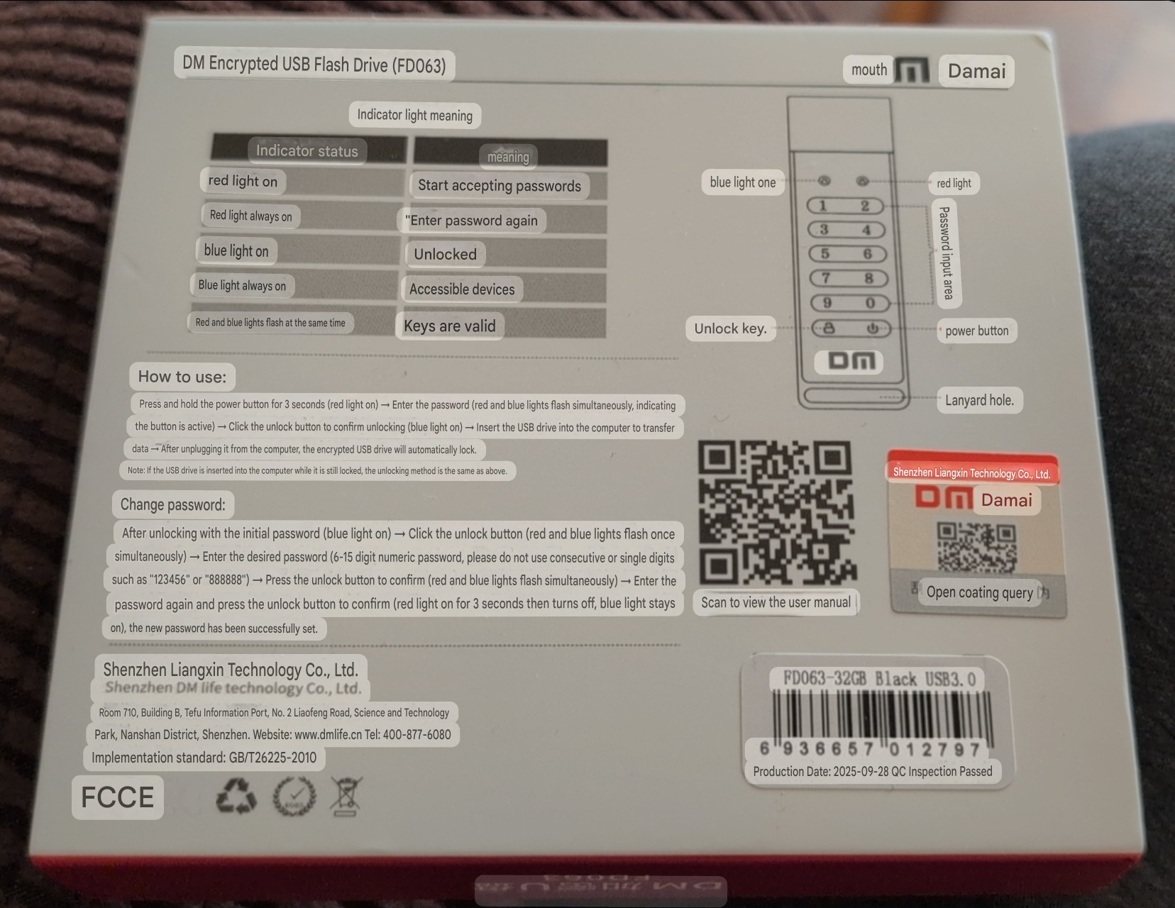 I did a quick performance test and on a USB 3 connection they deliver ~160 Mb/sec for reads and ~40 Mb/sec for writes. Just checking on Irish Amazon right there now, you can get a 64 Gb SanDisk very similar read performance for €12 inc VAT. So in those terms, this drive is expensive. However, if you want hardware encryption you’ll need to spend at least €65 inc VAT, and if you want hardware encryption AND a keypad then you’ll need to spend at least a cool €130 inc VAT for the same capacity. And now this Chinese drive looks great value for money. I gave it some brief battering under i/o loads to make sure it held up, and tested that all 32 Gb of its surface really exists, and both came out absolutely fine. It looks like the real deal.
