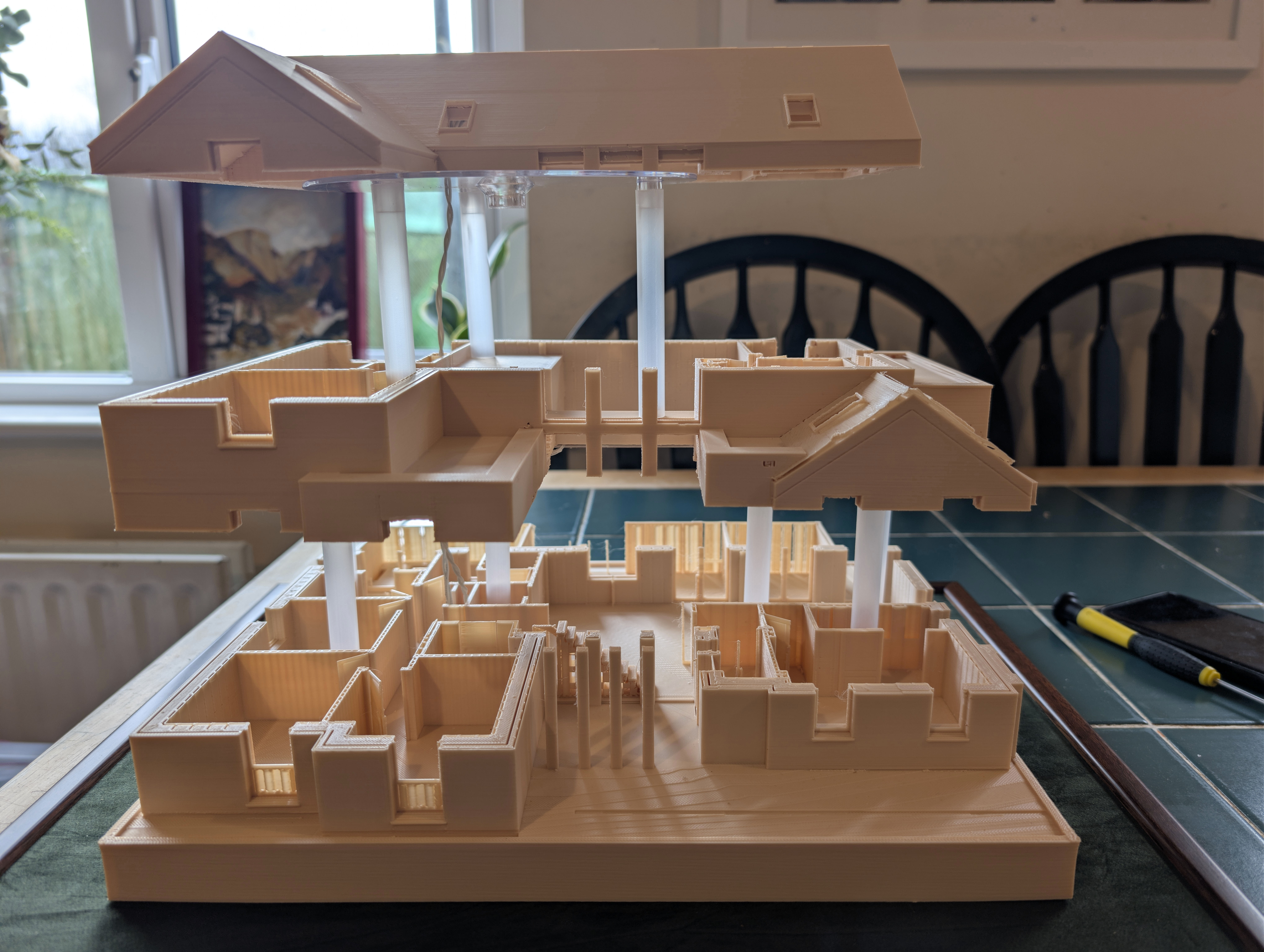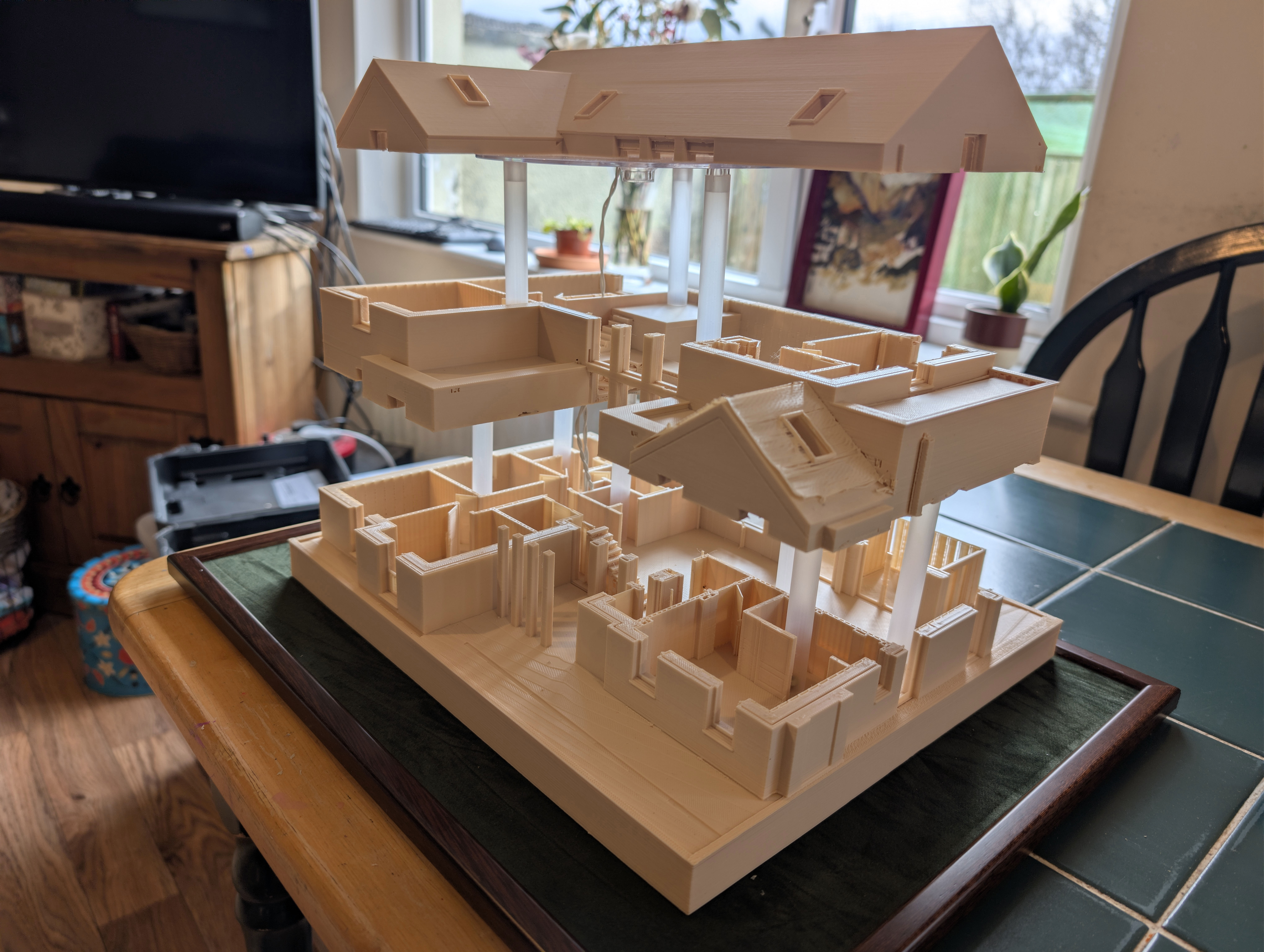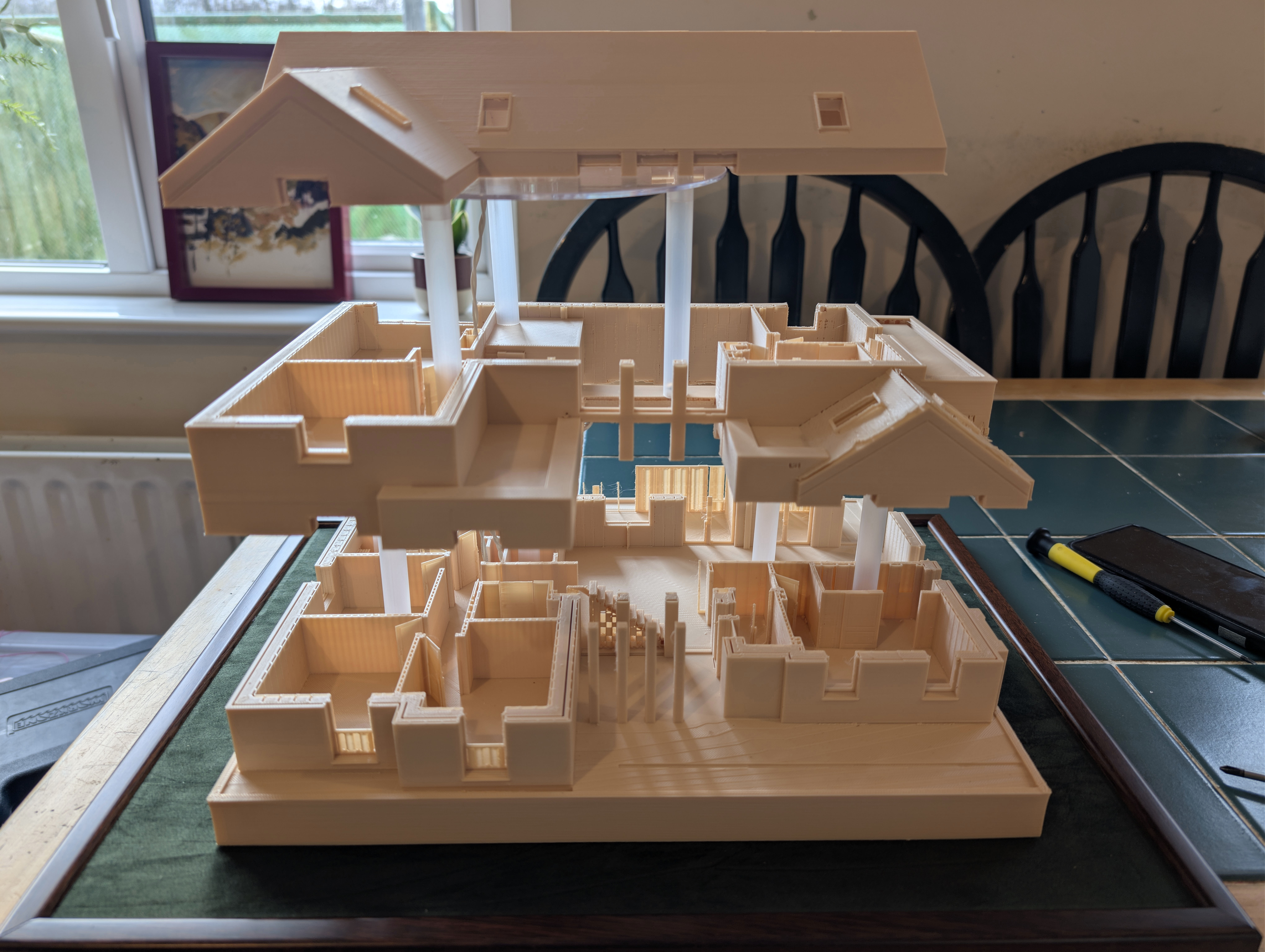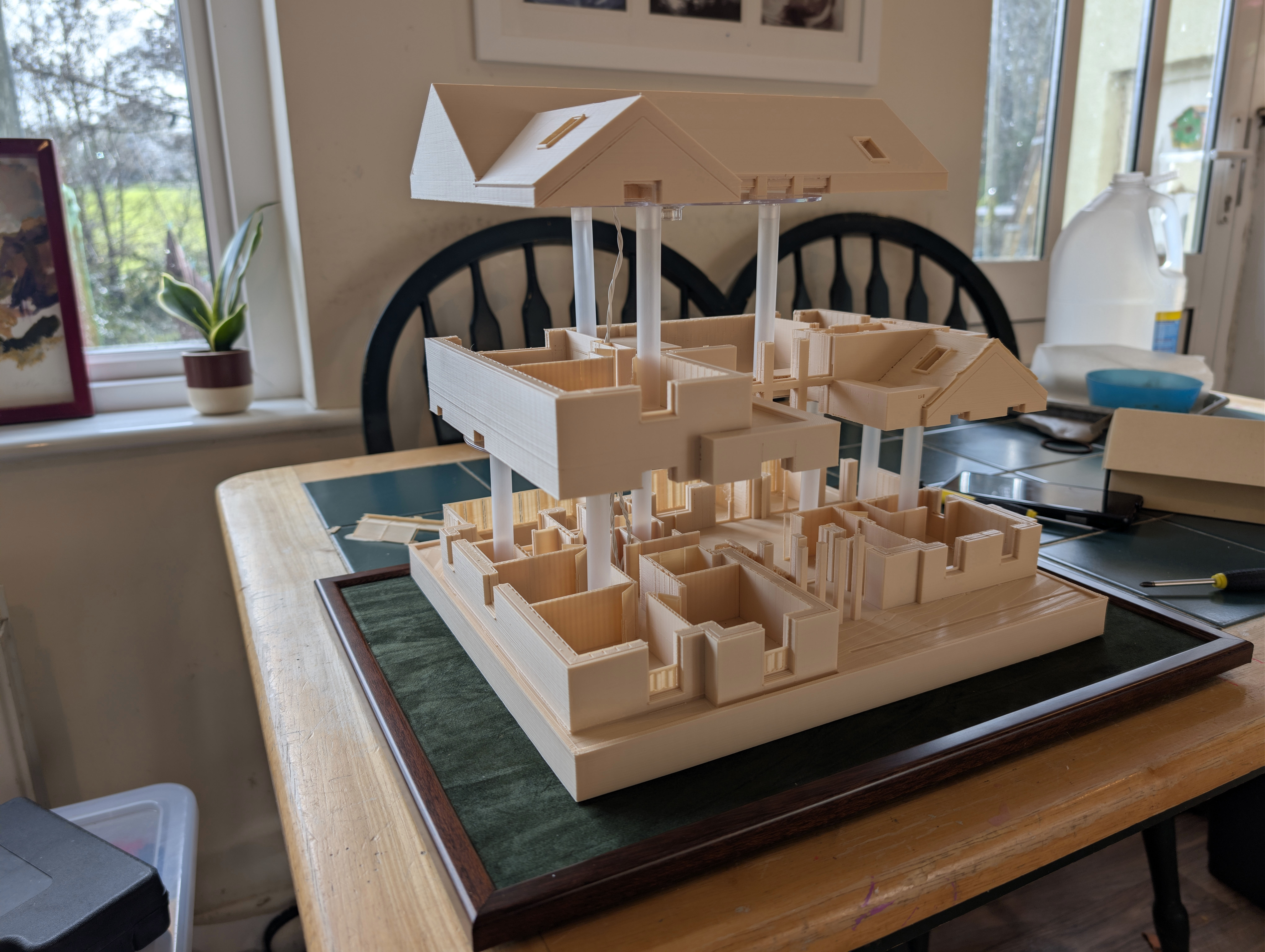 Eighteen months ago I taught myself enough 3D printing design skills that I was able to print my future house using my budget 3D printer. It came out well enough that I ordered online a much bigger print in ivory coloured ASA plastic, which I wrote about here back in June 2024. In that post, I demonstrated remarkable self knowledge by saying: