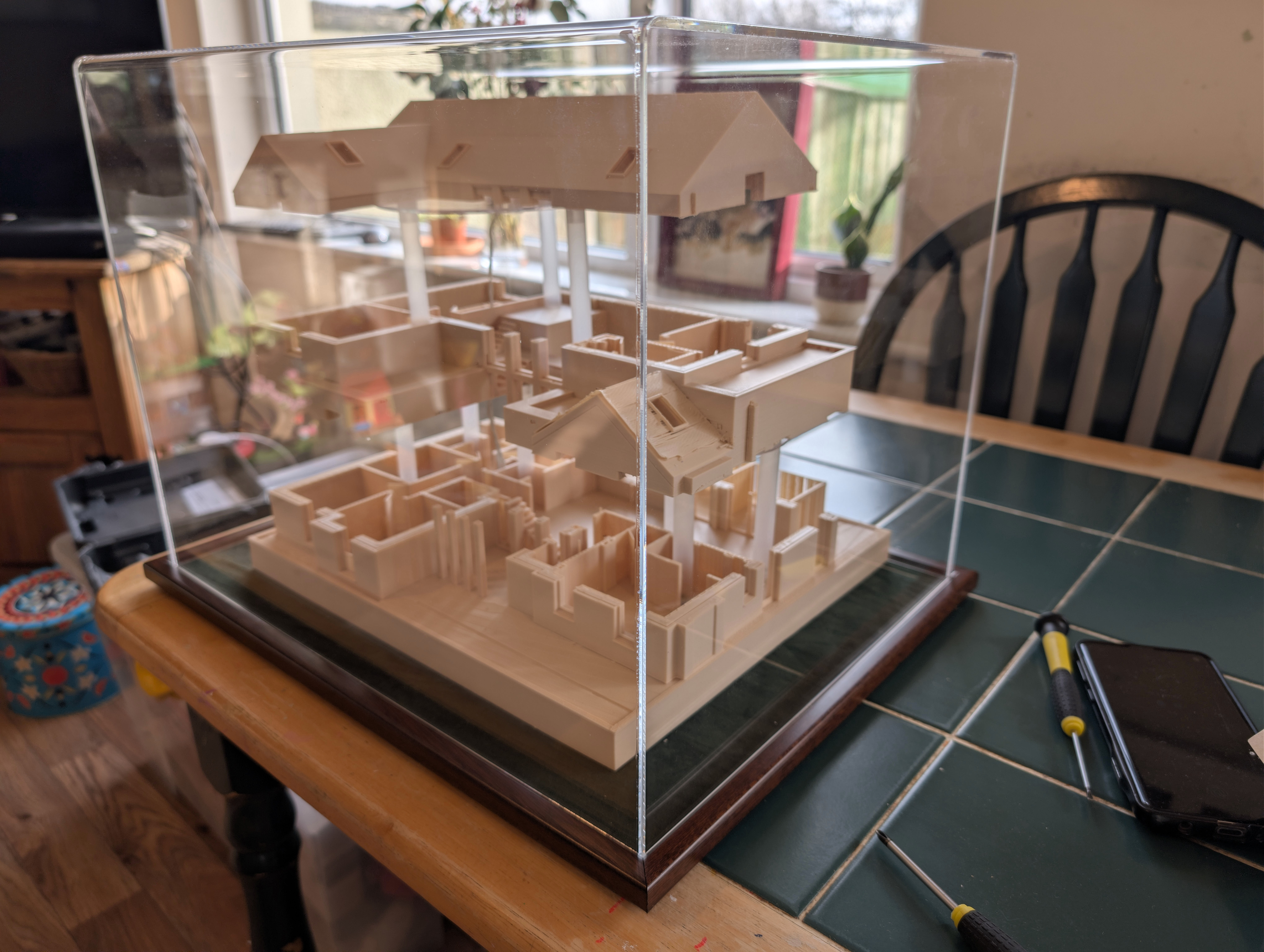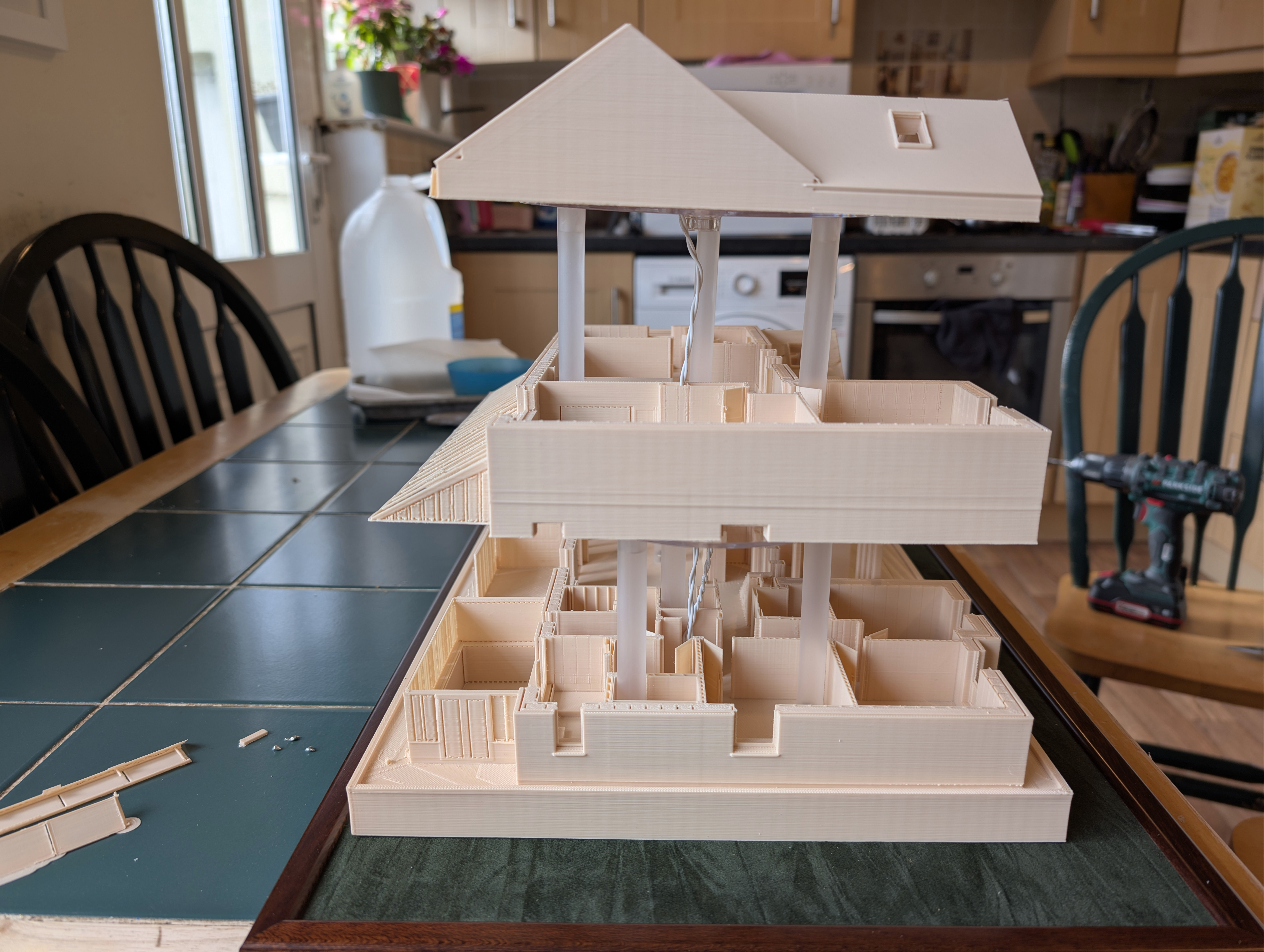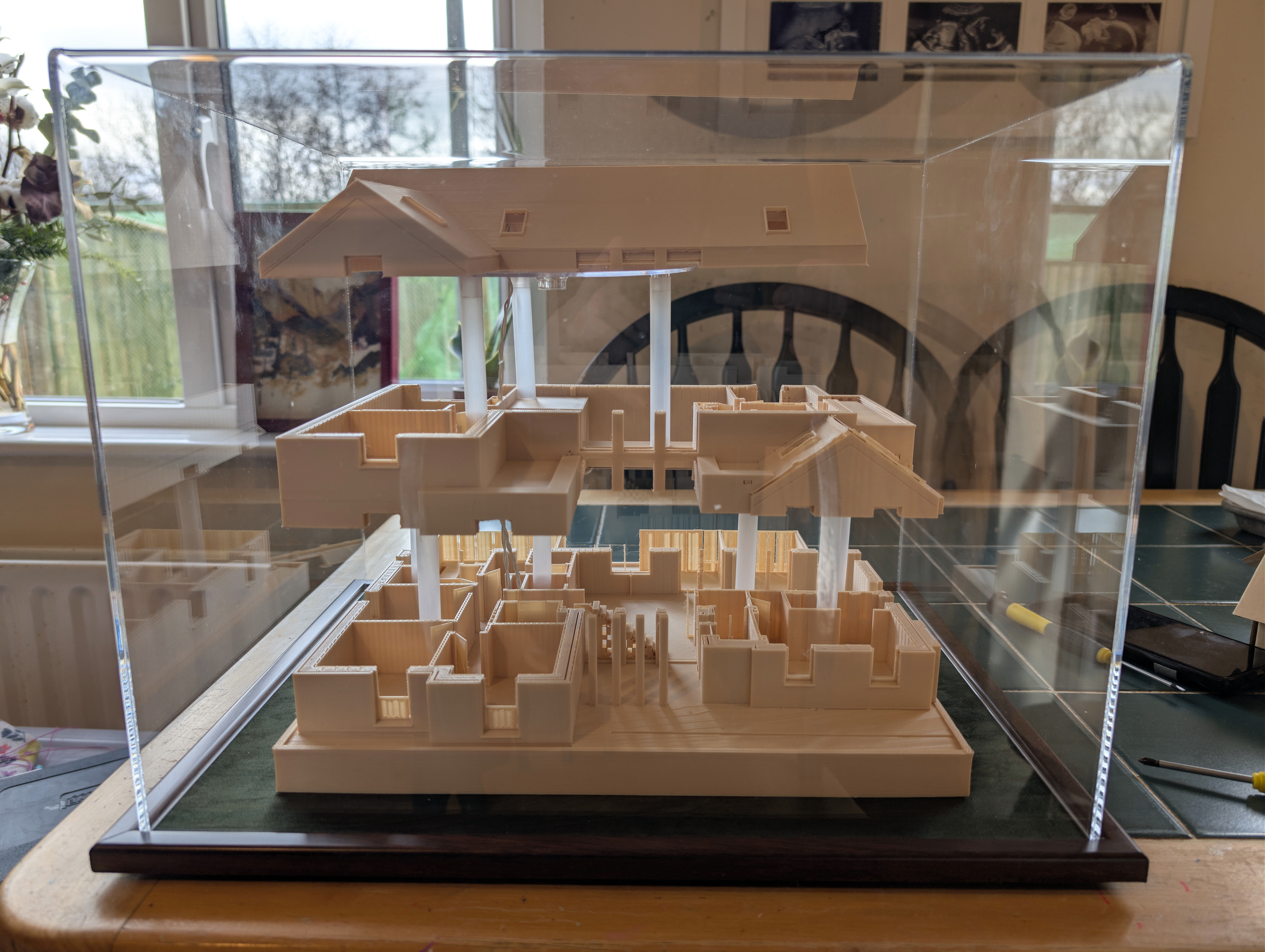Eighteen months ago I taught myself enough 3D printing design skills that I was able to print my future house using my budget 3D printer. It came out well enough that I ordered online a much bigger print in ivory coloured ASA plastic, which I wrote about here back in June 2024. In that post, I demonstrated remarkable self knowledge by saying: