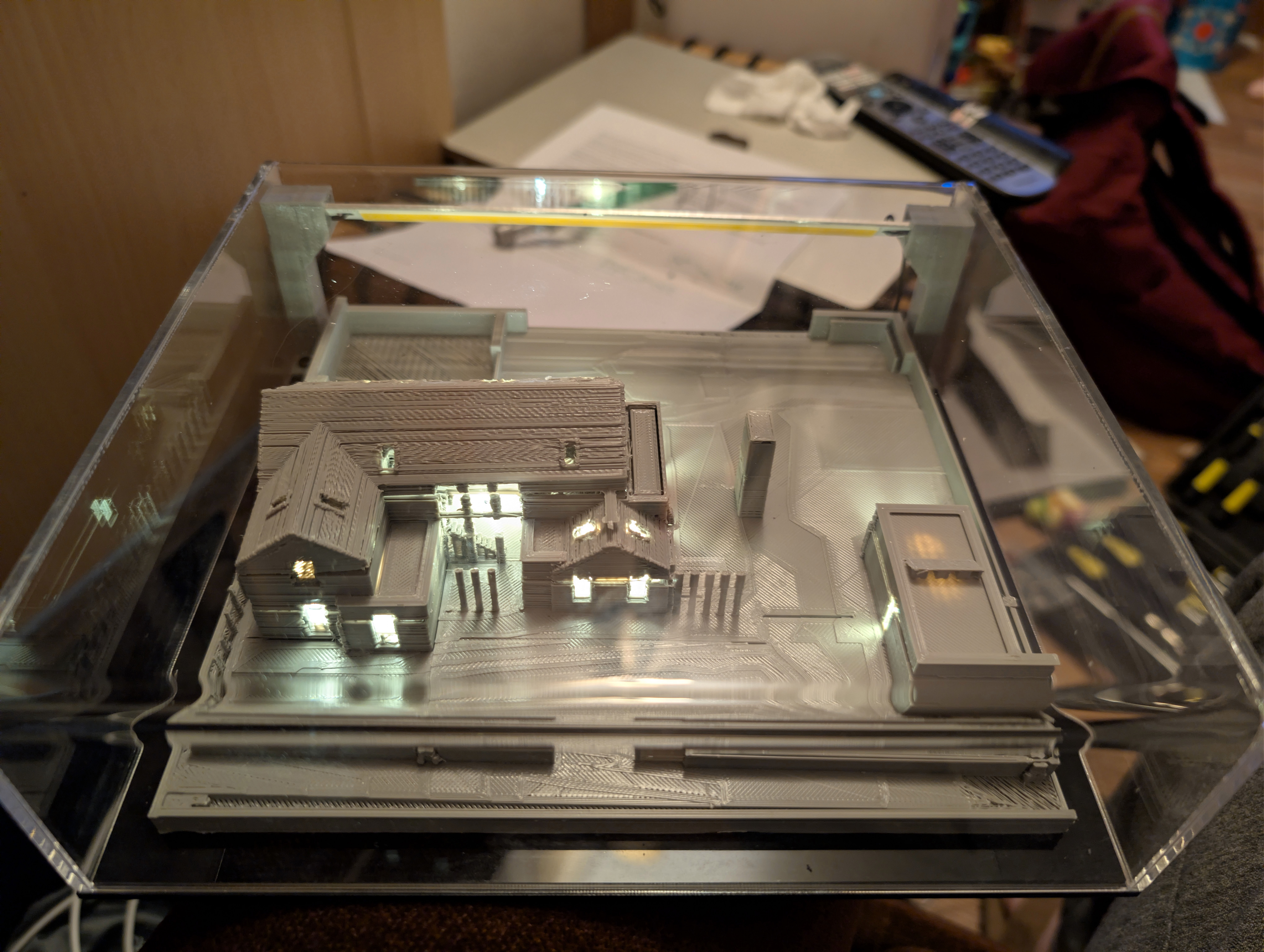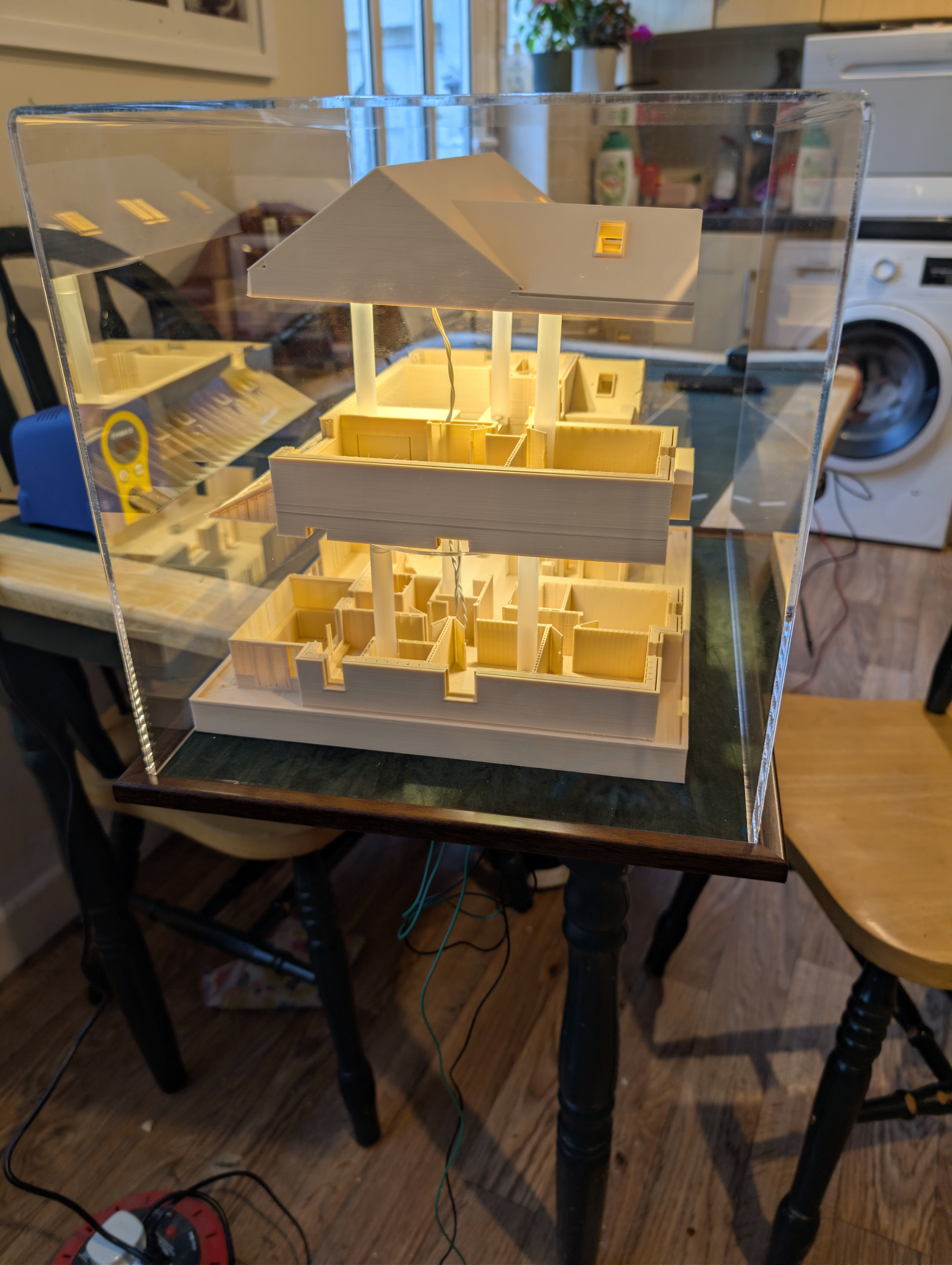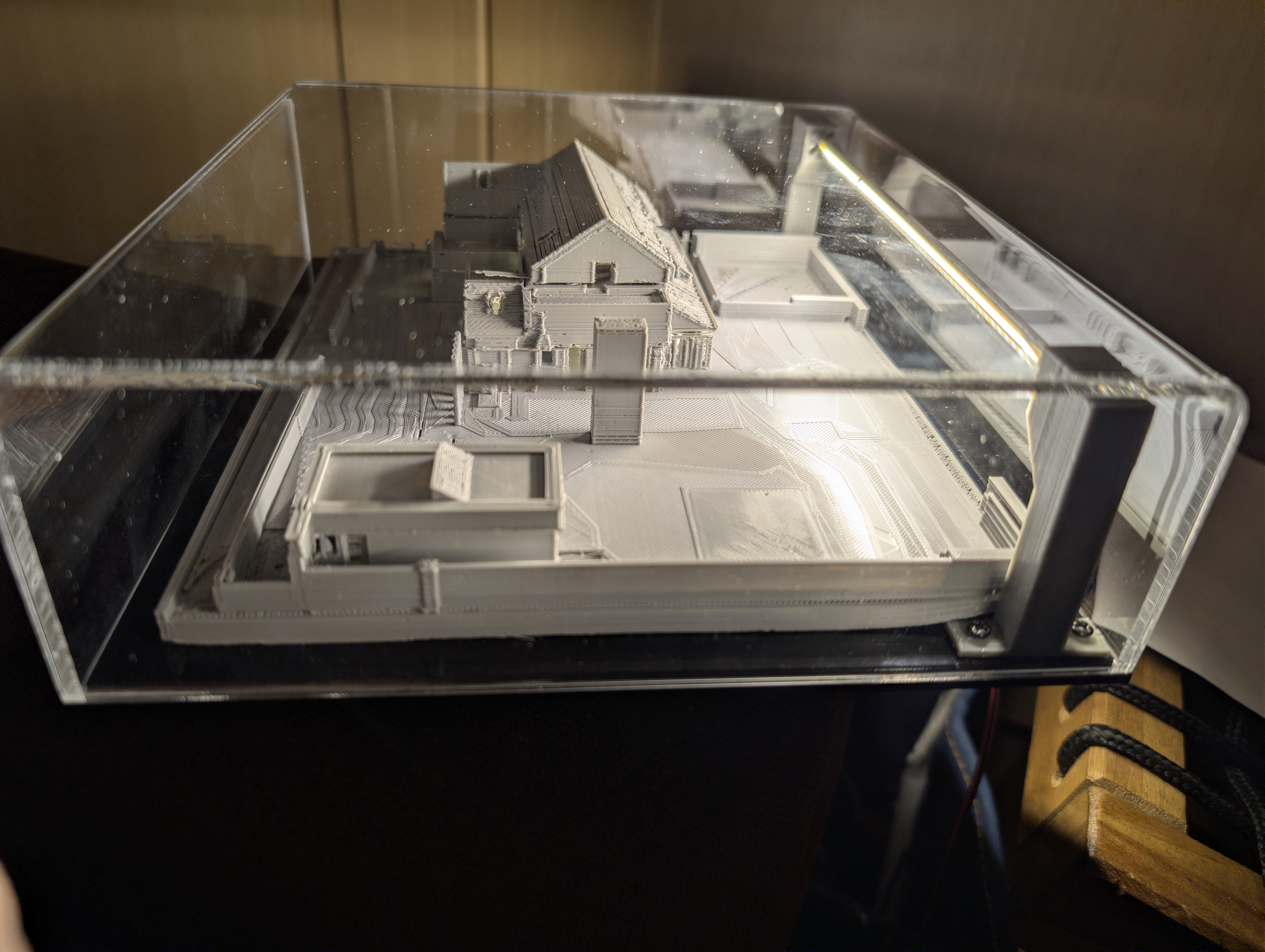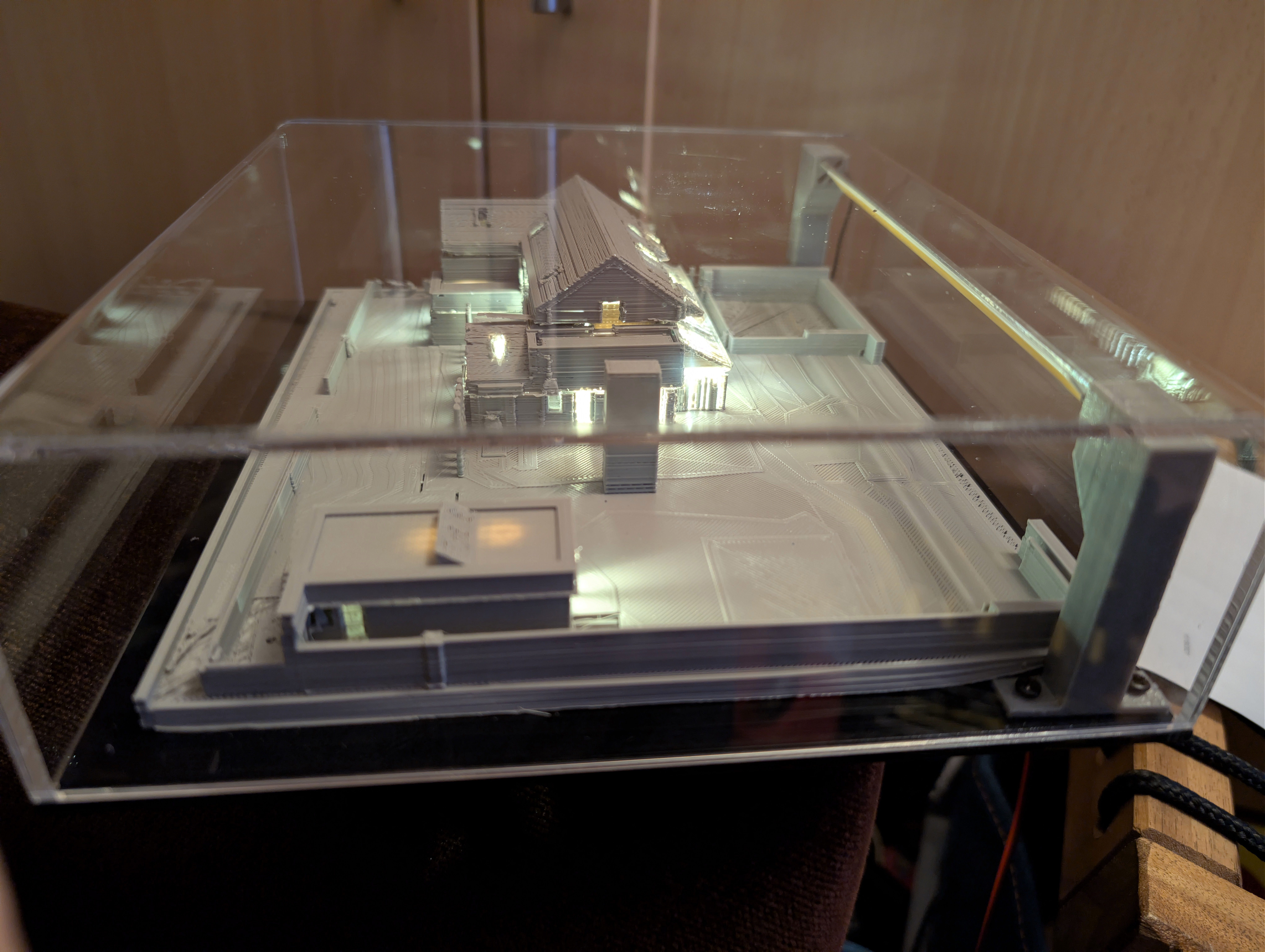 Eighteen months ago I taught myself enough 3D printing design skills that I was able to print my future house using my budget 3D printer. It came out well enough that I ordered online a much bigger print in ivory coloured ASA plastic, which I wrote about here back in June 2024. In that post, I demonstrated remarkable self knowledge by saying: