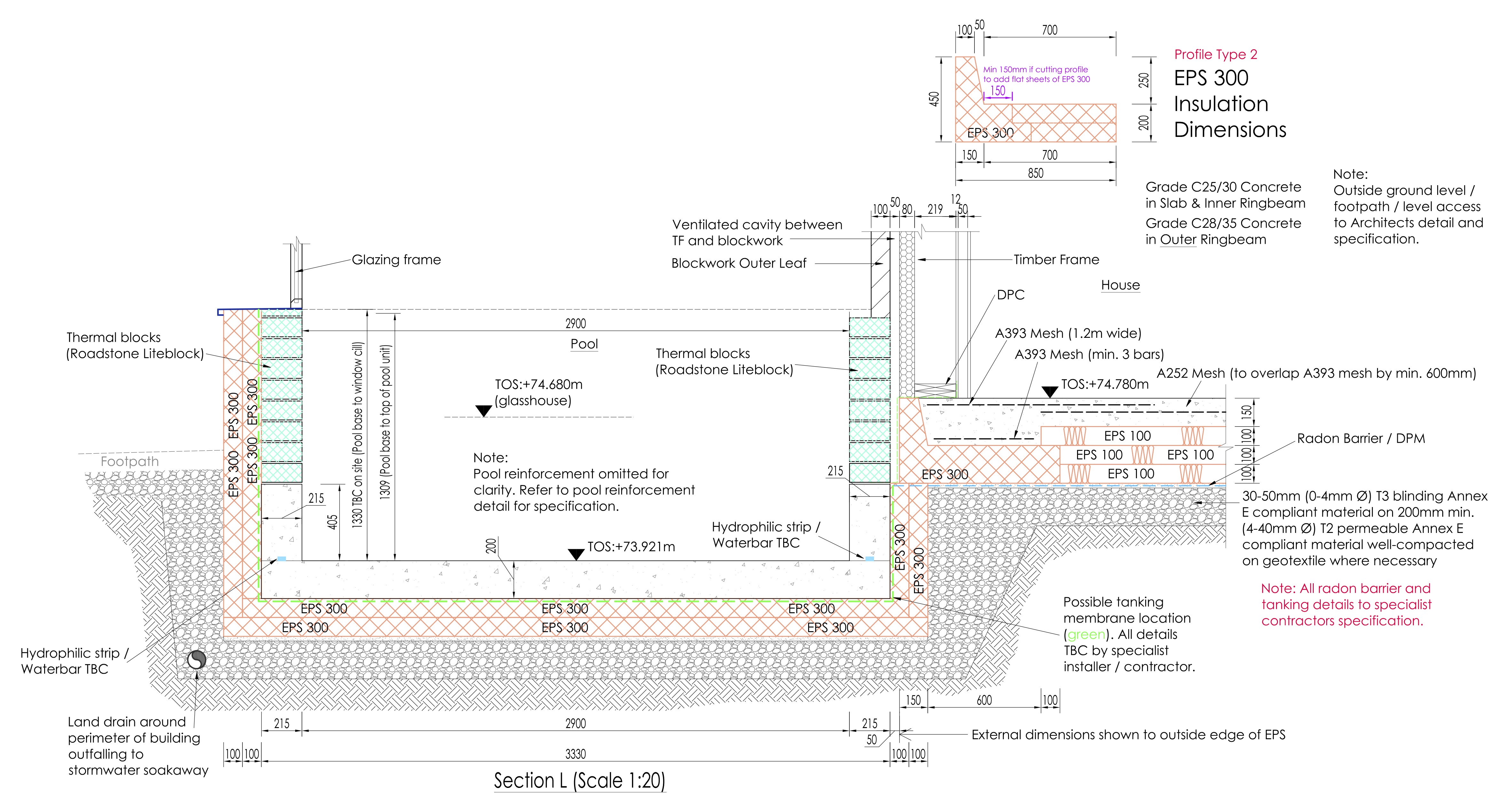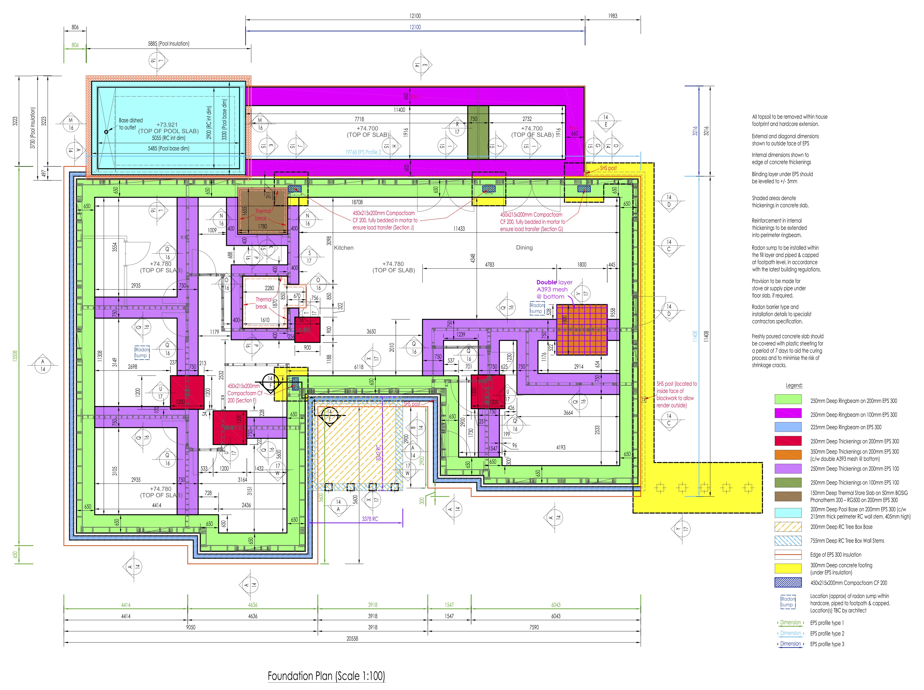 - Thickenings (these support internal wall and point loads)