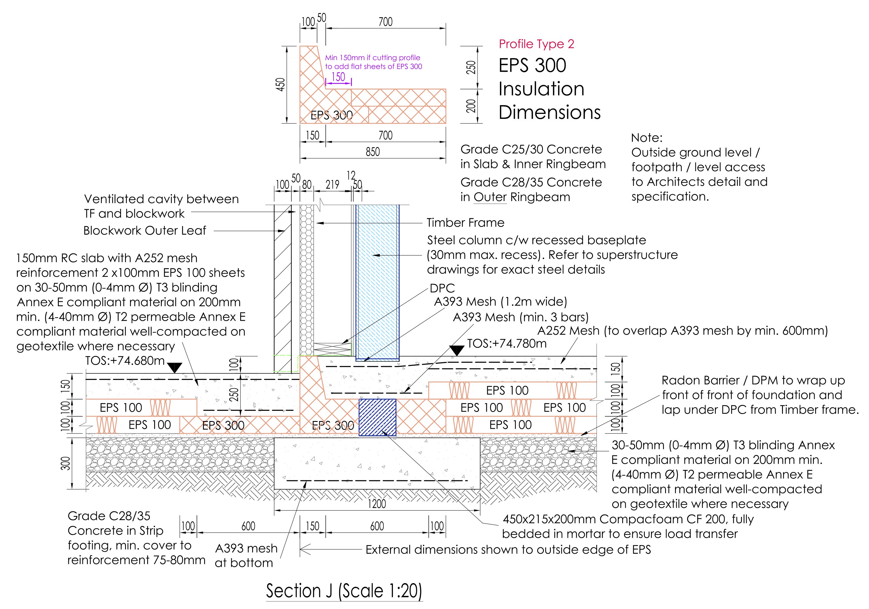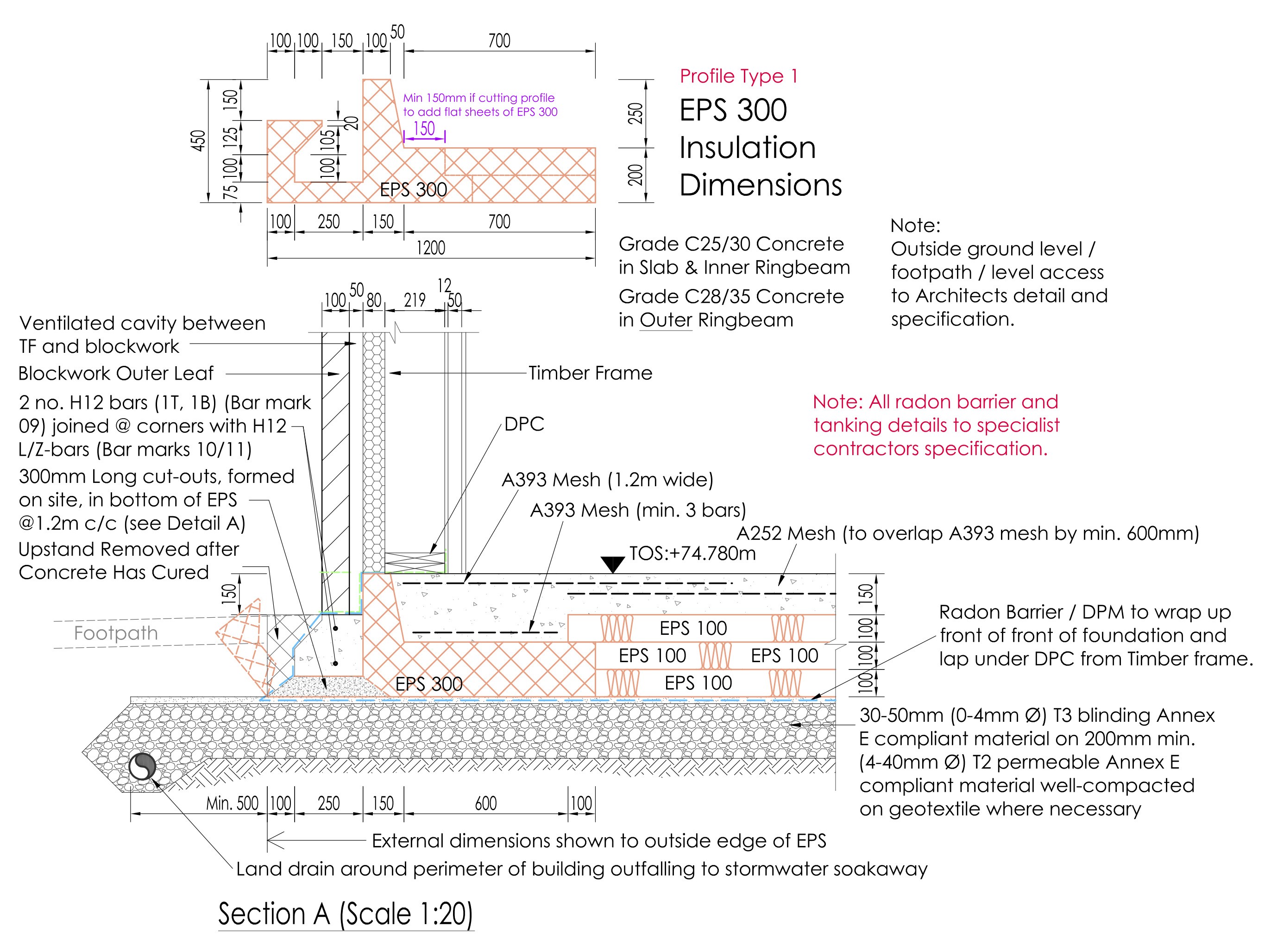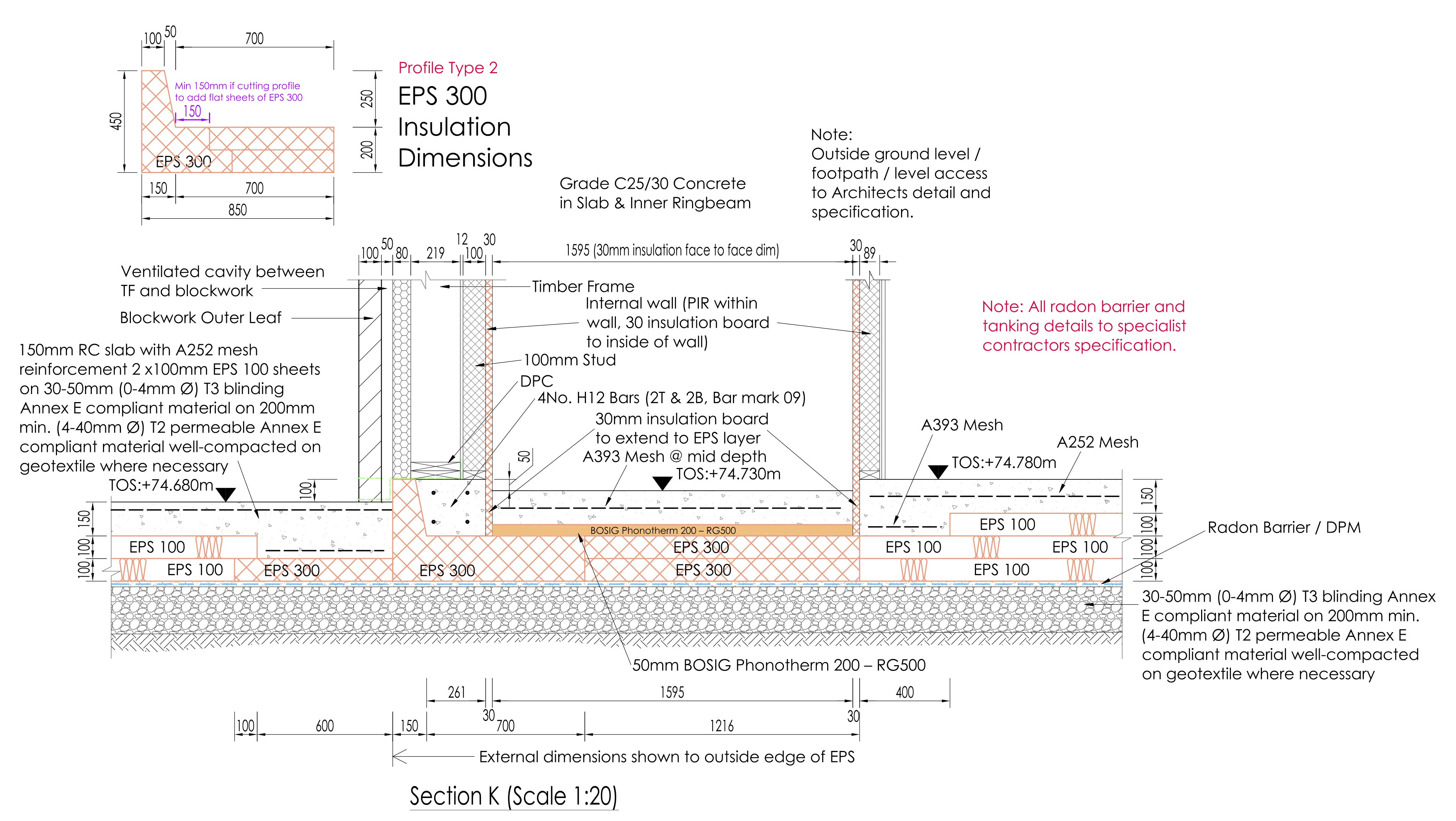 Unsurprisingly, this is identical to the standard KORE agrément requirements diagram I showed in the most recent post about the Outhouse design (and which I still think is overkill for a timber frame house load, but my structural engineer has no choice if we are to use the KORE insulated foundations system). Let’s look at something which we haven’t seen before:
