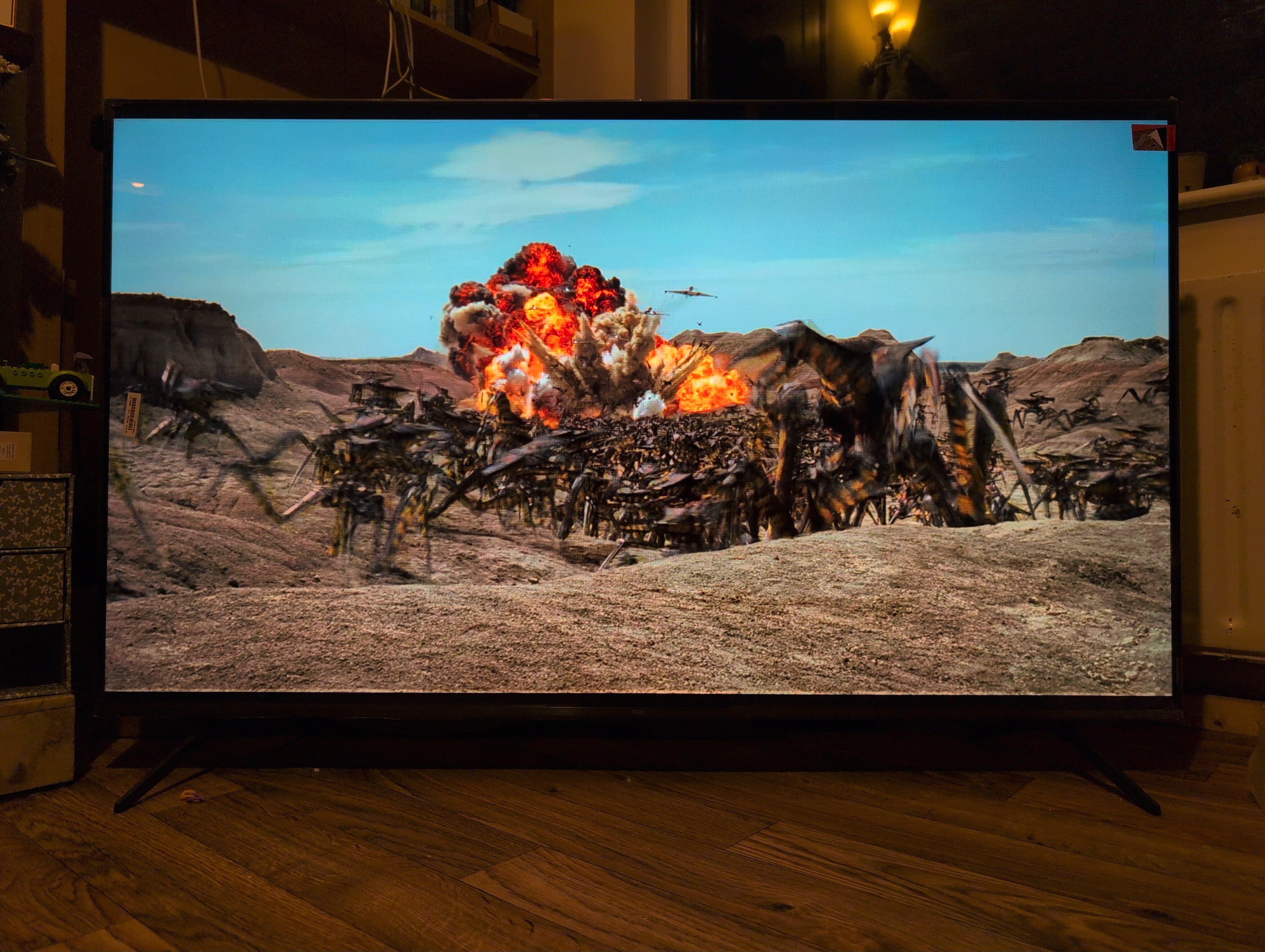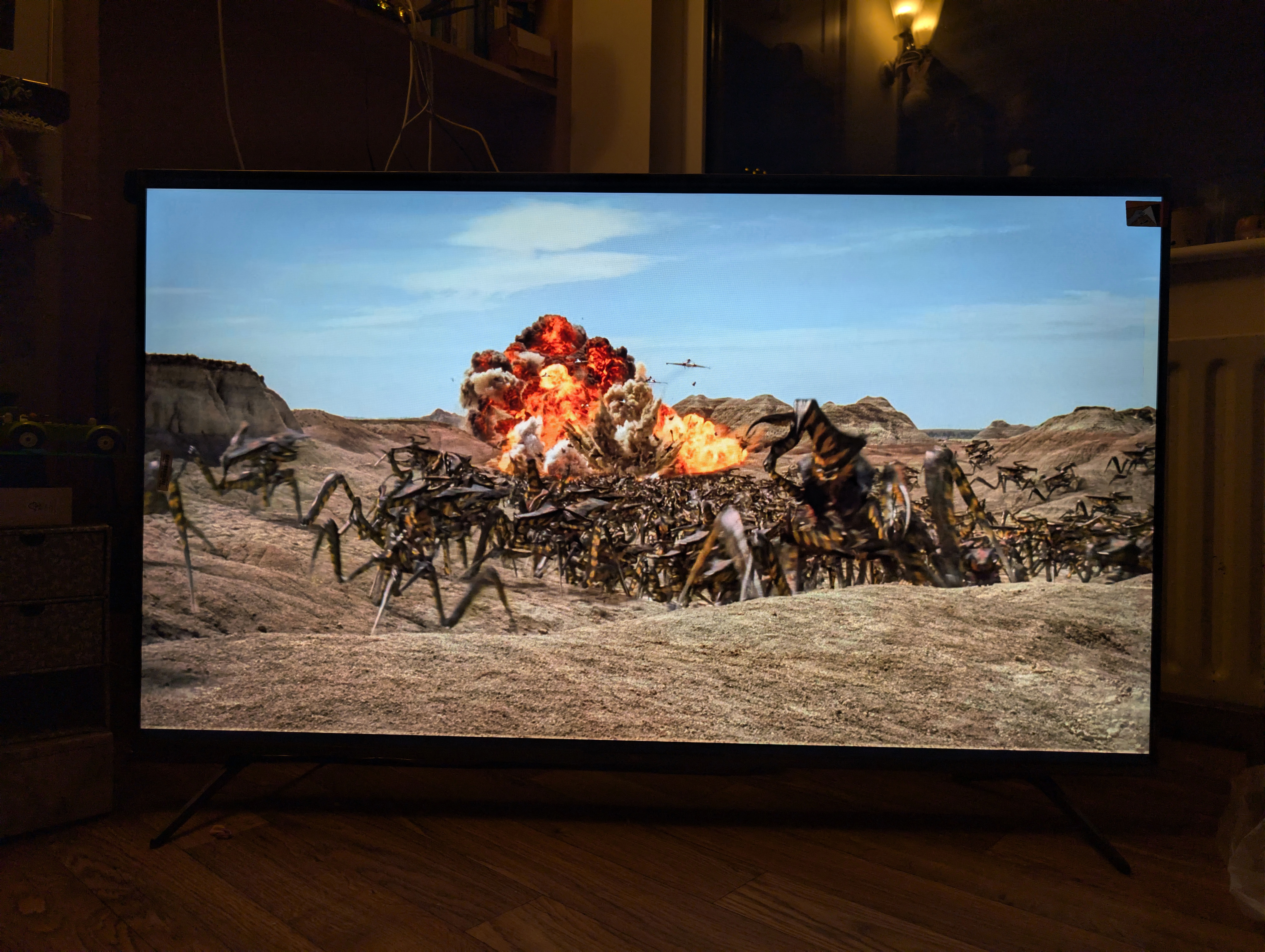 I of course took a comparison shot of the exact same scene from Starship Troopers to show you what I mean about the Dolby Vision HDR content looking wrong – unlike the photo above which was taken using UltraHDR, this one was taken as SDR: